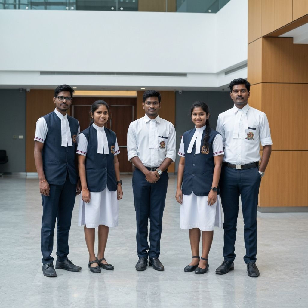 Today, RS Enterprises is proud to serve numerous schools across Chennai and surrounding areas, offering customizable solutions that reflect each institution's unique identity. From intricately embroidered badges to professional lab coats, from adjustable school belts to comfortable cotton blend socks, and complete uniform accessories including ID lanyards, ties, caps, and house badges – we provide comprehensive supply solutions that educational institutions trust and depend on.